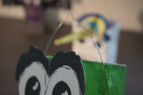 Now make a few small holes in the side of the box and pull a wire through to hold the lantern pole. Use pliers to help if the wire is difficult to bend.
