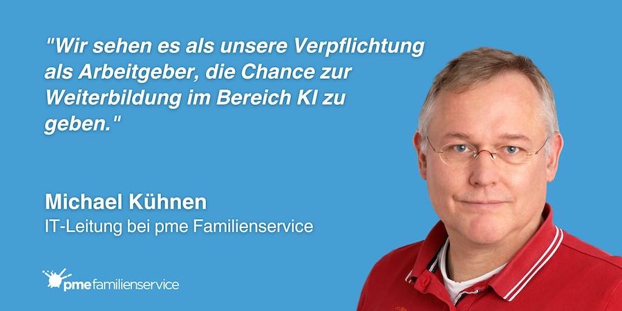 "We see it as our responsibility as an employer to provide opportunities for professional development in the field of AI. That is why we made a conscious decision to make our AI platform, Nova, available to everyone in the company." – Michael Kühnen, Head of IT at pme Familienservice